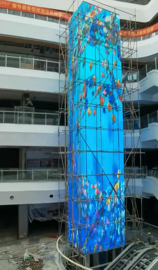 LED透明屏,顾名思义,是以“透明”为最大特点。传统屏不透光、不透风等客观性能,造成了屏体过重、散热不良、结构冗杂、耗电 量高、造型突兀等诸多问题,从而催生了“透明LED显示屏”。具有高通透,超轻博的特点,它的实现原理是对灯条屏的微创新,对贴片 制造工艺、灯珠封装、控制系统的都进行了针对性的改进,加上镂空设计的结构,减少了结构部件对视线的阻挡,最大限度的提高了透视 效果。同时还具有新颖独特的显示效果,观众站在理想距离观看,画面像悬浮于玻璃幕墙之上。LED透明屏让LED显示屏的应用版图扩大到建 筑玻璃幕墙和商业零售橱窗这两大市场,成为了新媒体发展的一个新的走向。