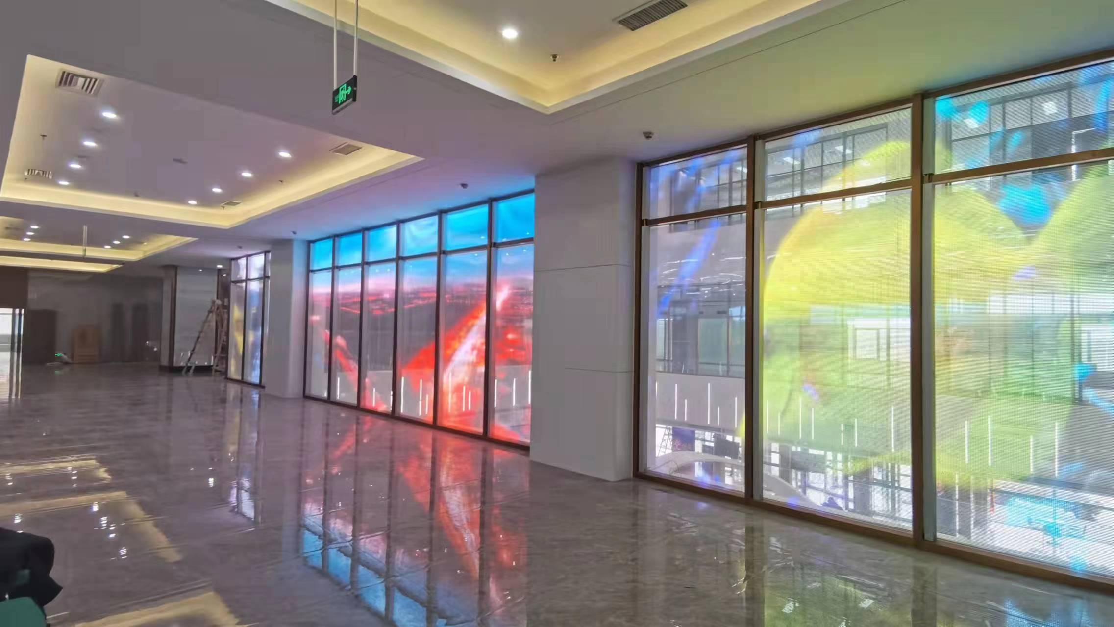 轻(3KG/㎡)、薄(3-6mm)、透明,任意裁剪,百搭造型,美观大气,安装简单是国佳贴膜屏的最大趋势,国佳研发出的贴膜屏,致力于满足全球LED贴膜屏的需求,采用我司特定芯片,将元器件固装在高透的PCB板材上,通过特有的盖胶工艺,使显示模块整合成一款高透可发光显示的光学透镜式基板。