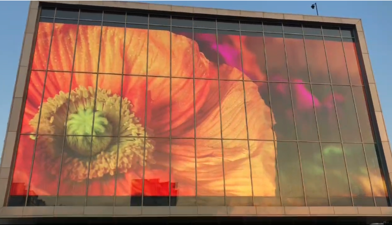 在组成结构上,LED透明屏的核心组成部分是透明LED芯片,其结构经过镂空或网格状设计,减少了实体部分,使得整体观感更轻薄且时尚,视觉效果极佳。此外,它还具有安装灵活的特点,可以轻松嵌入现有建筑结构中,如玻璃幕墙、橱窗等,无需额外增加过多承重结构,并且便于安装与维护。