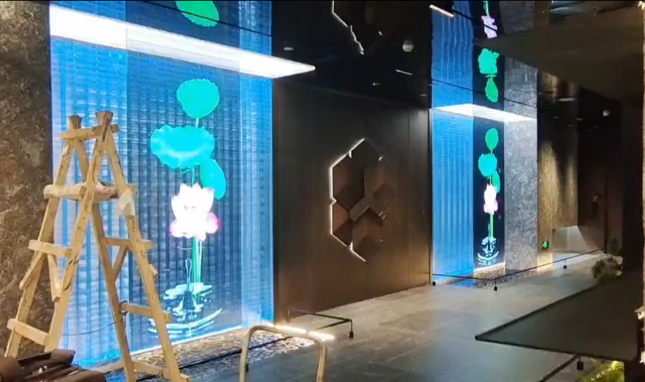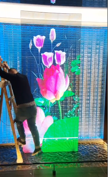 LED全息隐形网格屏具有许多显著的优势。首先,它的透明度高,无结构龙骨架的设计使得直视感观通透率高达90%以上,人们在欣赏显示内容的同时,几乎感觉不到屏幕的存在。其次,它轻盈美观,屏体重量轻、厚度薄,可以完美贴合在透明玻璃上,与建筑结构融为一体,不破坏原有建筑的美感。此外,它的模组设计巧妙,可弯曲、可裁剪,能够适应各种不同形状和大小的显示需求。