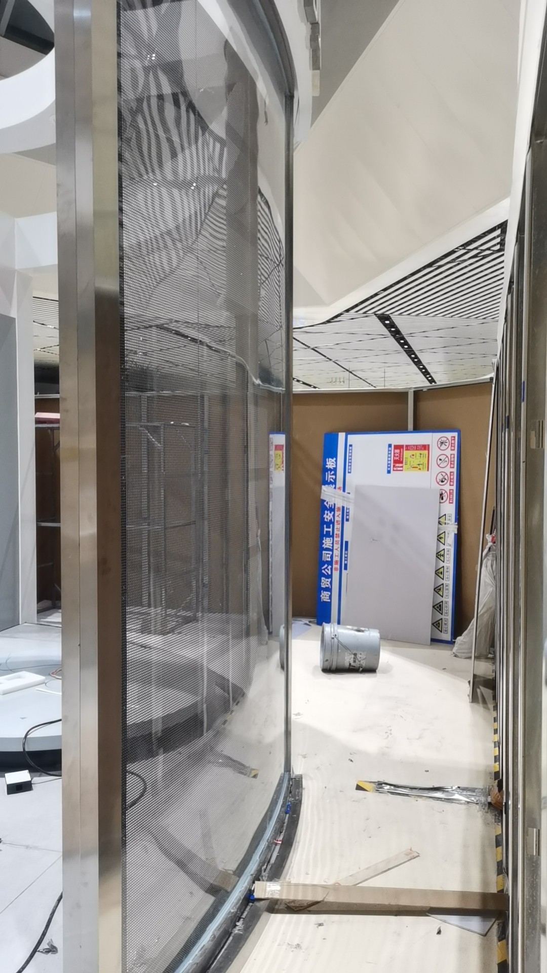 LED全息隐形屏具有许多显著的优势。首先,它的透明度高,无结构龙骨架的设计使得直视感观通透率高达90%以上,人们在欣赏显示内容的同时,几乎感觉不到屏幕的存在。其次,它轻盈美观,屏体重量轻、厚度薄,可以完美贴合在透明玻璃上,与建筑结构融为一体,不破坏原有建筑的美感。此外,它的模组设计巧妙,可弯曲、可裁剪,能够适应各种不同形状和大小的显示需求。