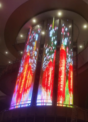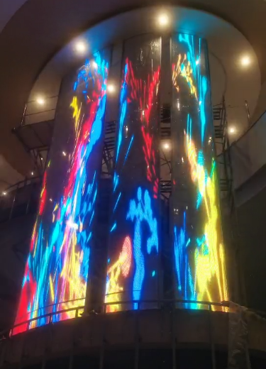 LED全息隐形屏具有许多显著的优势。首先,它的透明度高,无结构龙骨架的设计使得直视感观通透率高达90%以上,人们在欣赏显示内容的同时,几乎感觉不到屏幕的存在。其次,它轻盈美观,屏体重量轻、厚度薄,可以完美贴合在透明玻璃上,与建筑结构融为一体,不破坏原有建筑的美感。此外,它的模组设计巧妙,可弯曲、可裁剪,能够适应各种不同形状和大小的显示需求。