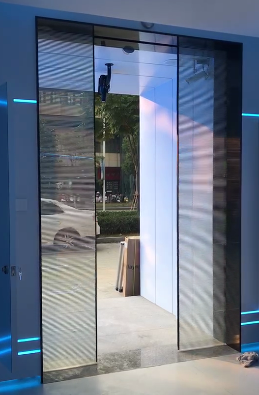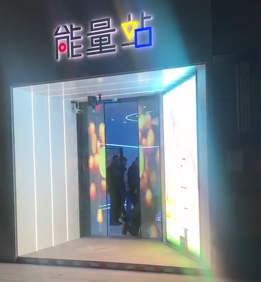 绍兴市中国石油能量站电动门贴膜屏投入使用,背面干净整洁,行业最漂亮的电动门就属它。