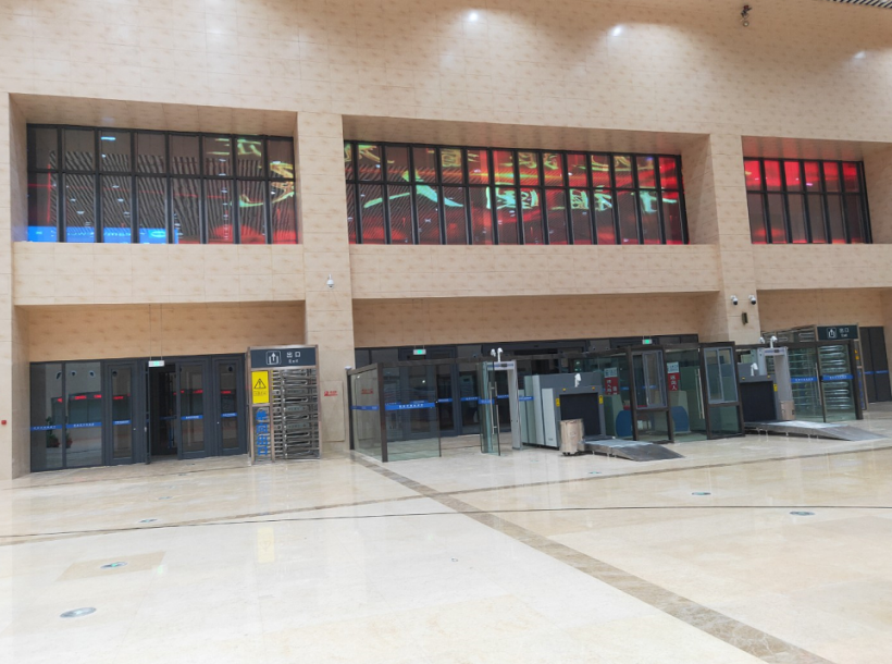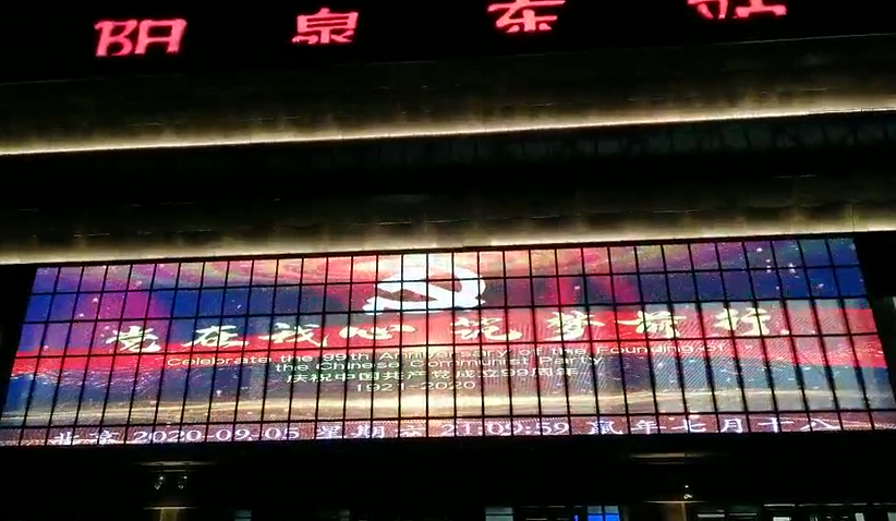 阳泉东站(Yangquan East Railway Station )位于阳泉市生态新城宁波北路,隶属于中国铁路北京局集团,是阳大铁路阳泉东线的始发终到车站与重要车站。始建于2017年,2020年9月24日投入运营。2020年12月22日至1月6日,阳大铁路接入石太客专,阳泉东站具备开通直达北京、太原和石家庄方向的跨线列车的条件。国佳光电G10光电玻璃屏直接替代传统玻璃,外观与车站周边玻璃颜色一样,在不播放的情况下就视一块玻璃,通电以后就是一块显示屏,高透,高清晰的优点为阳泉高铁站信息发布,数字信息传播起到了关键作用,同时在迎接山西省委书记,省长,阳泉市委书记,市长及各大领导工作视察也起到了关键作用。 深圳市国佳光电科技有限公司注册资金5000万,生产面积15000平方,是集研发、设计、生产、施工一体的高新技术企业。专业生产LED贴膜屏、LED光电玻璃屏、LED玻璃叫号屏,玻璃护栏屏,LED透明屏、LED格栅屏、LED晶膜屏等系列产品。产品广泛应用于商业综合体、展厅、酒吧、门店、酒店、写字楼、高铁、地铁、车站、机场等场合,资质齐全,质优价廉,可配合各种大项目招投标。