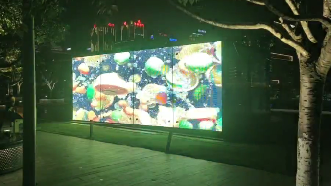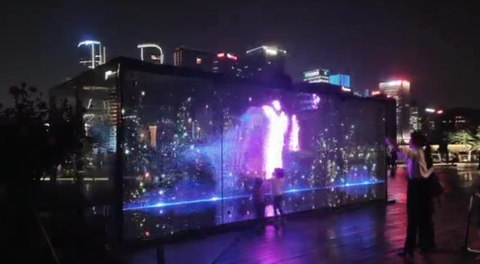 国佳光电8块G6.5LED贴膜屏竖立在广场上面,有的用于播放视频,有的人屏互动,成为了广场上的一道靓丽风景,过往人员流量往返驻留脚步来翩翩起舞。