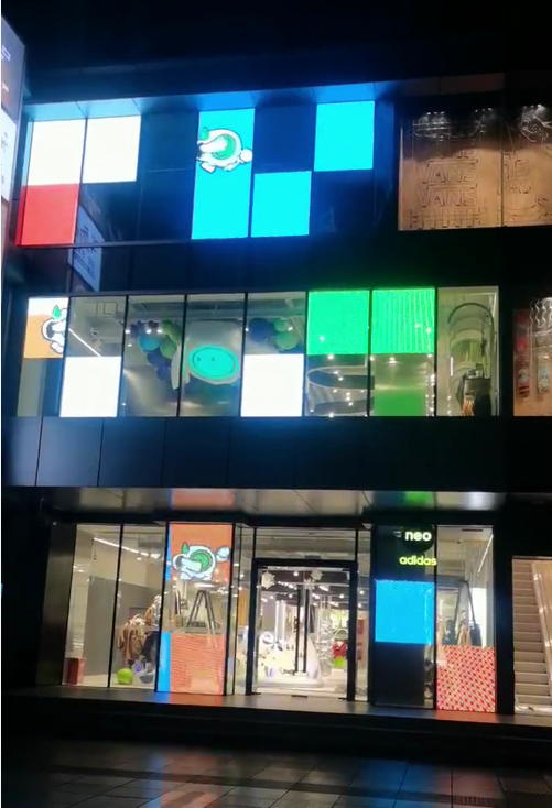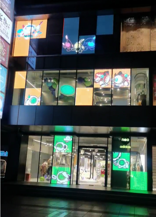 轻(3KG/㎡)、薄(3-6mm)、透明,任意裁剪,百搭造型,美观大气,安装简单是国佳贴膜屏的最大趋势,国佳研发出的贴膜屏,致力于满足全球LED贴膜屏的需求,采用我司特定裸晶芯片,将元器件固装在高透的PCB板材上,通过特有的盖胶工艺,使显示模块整合成一款高透可发光显示的光学透镜式基板。