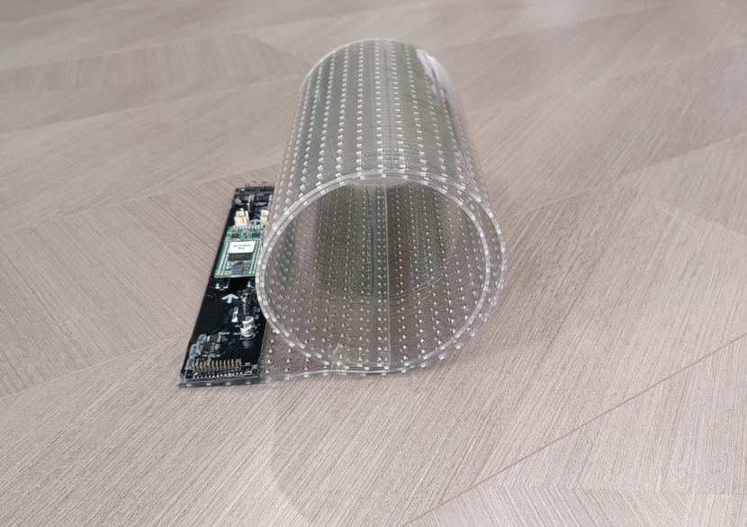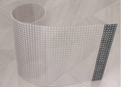 LED晶膜屏是一款打破常规LED透明屏产品。采用特定裸芯片,将元器件固装在高透的柔性薄膜上,通过特有的盖胶工艺,使显示模块整合成可发光显示的高透光学透镜式基板。具有轻薄、透明、灵活轻便、安装简单的特点。产品应用于幕墙、展厅橱窗、观光电梯、商场护栏等玻璃领域,安装方便,直接粘贴于玻璃上面,正面背面都可以贴,产品可以现场直接用美工刀裁剪,可以360度任意弯曲,透明度高大99%,售后简单,屏体本身采用灯区一体除了灯看不到其他的电子元器件,单边最长1.5米,上下拼接3米,长度无限制。